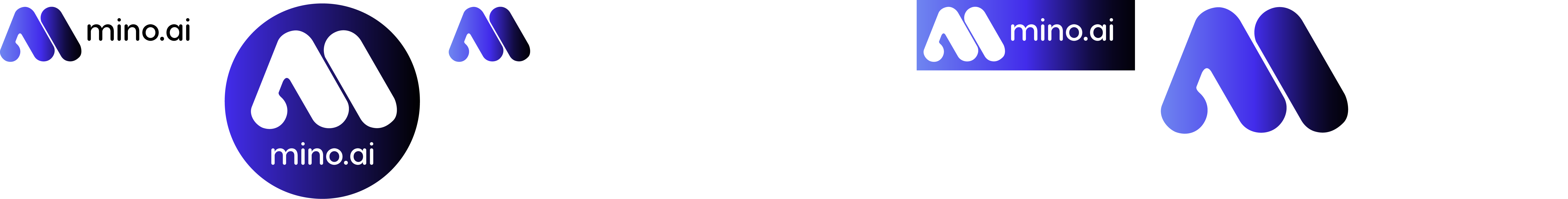 The Mino.ai logo has two forms: the horizontal mark (icon + "mino" wordmark) for general use, and the circle badge for compact or social contexts.
